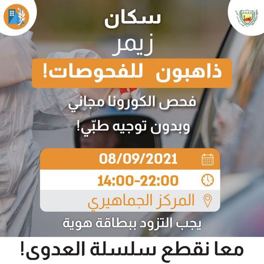 ستكون محطه للفحوصات يومي الثلاثاء والاربعاء 7.9.2021 و 8.9.2021 في المركز الجماهيري .